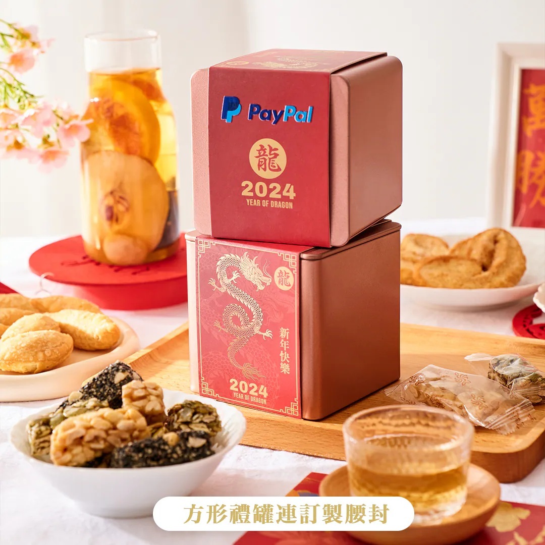 方形茶罐連腰封 【可客製化公司Logo、腰封、賀咭】【禮物内容可選養生花茶包、雪花酥、曲奇、蝴蝶酥等】