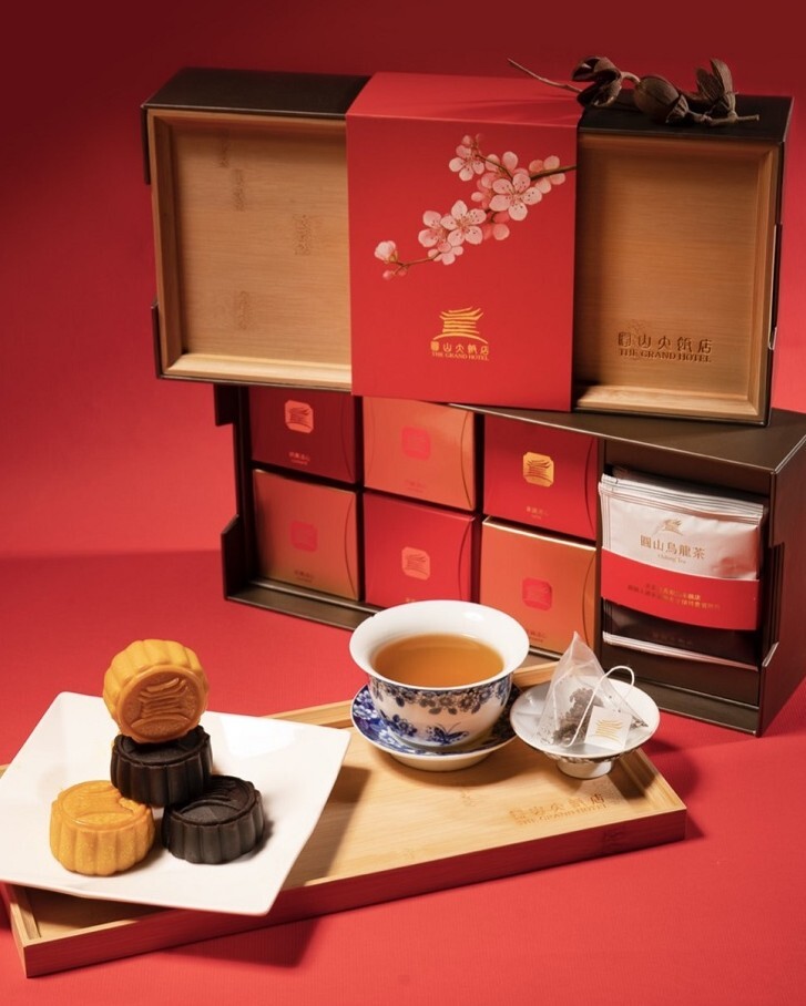 茗茶月餅珍藏禮盒: 以頂級茶葉配搭名店月餅,用清香的茶味來中和月餅的甜膩,在味道上達到完美平衡,是送給長輩或重要客戶最顯品味的雅致選擇。
