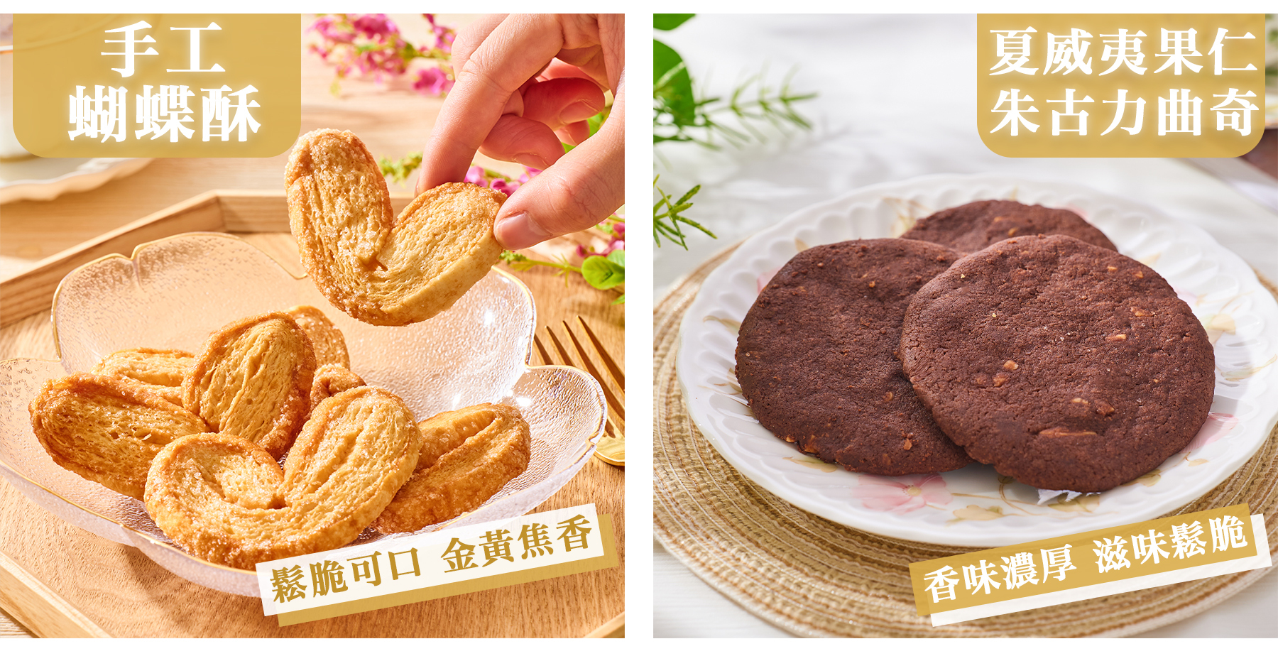 ・蝴蝶酥・蔓越莓南瓜子雪花酥 ‧芒果南瓜子雪花酥・士多啤梨南瓜子雪花酥