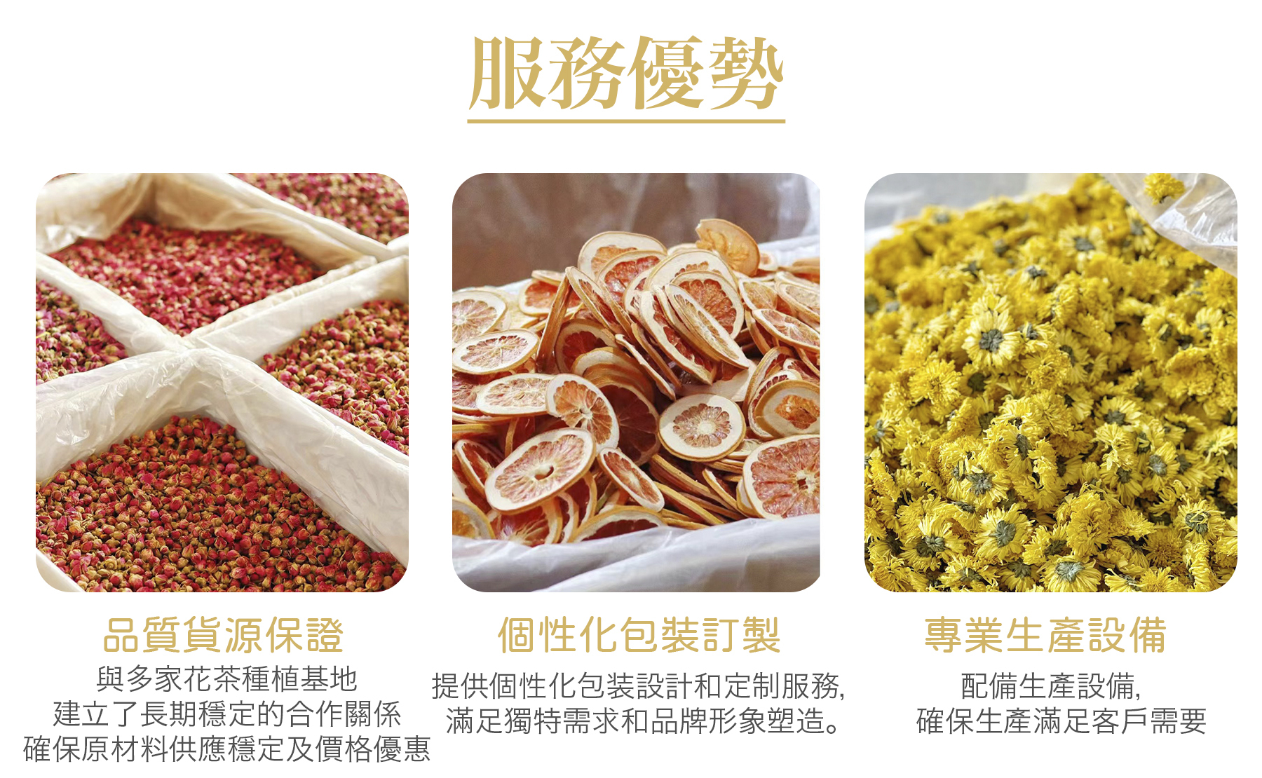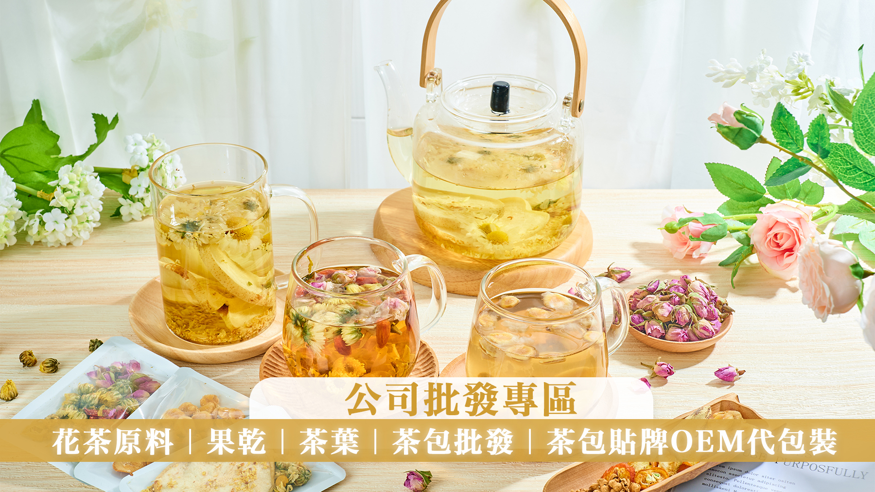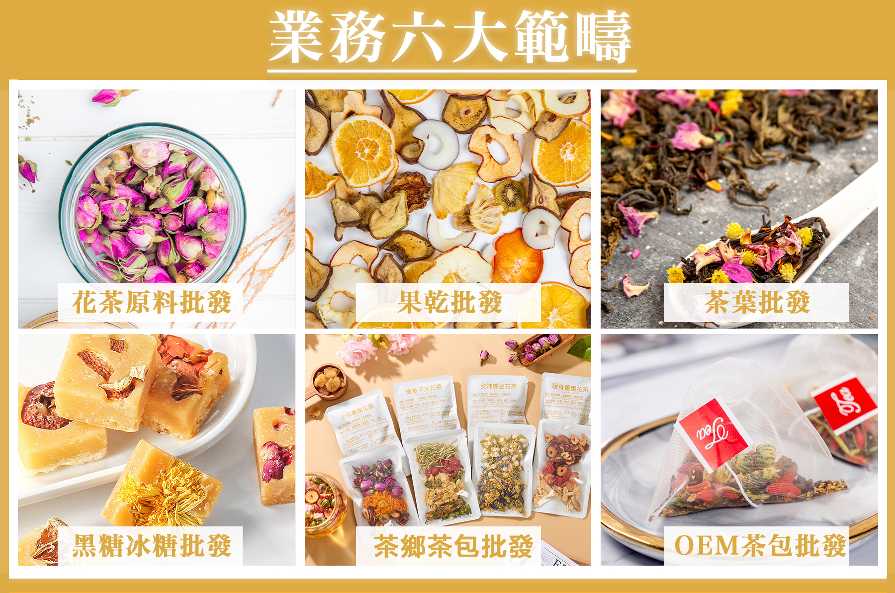 包括花茶原料、水果乾、茶包產品等,