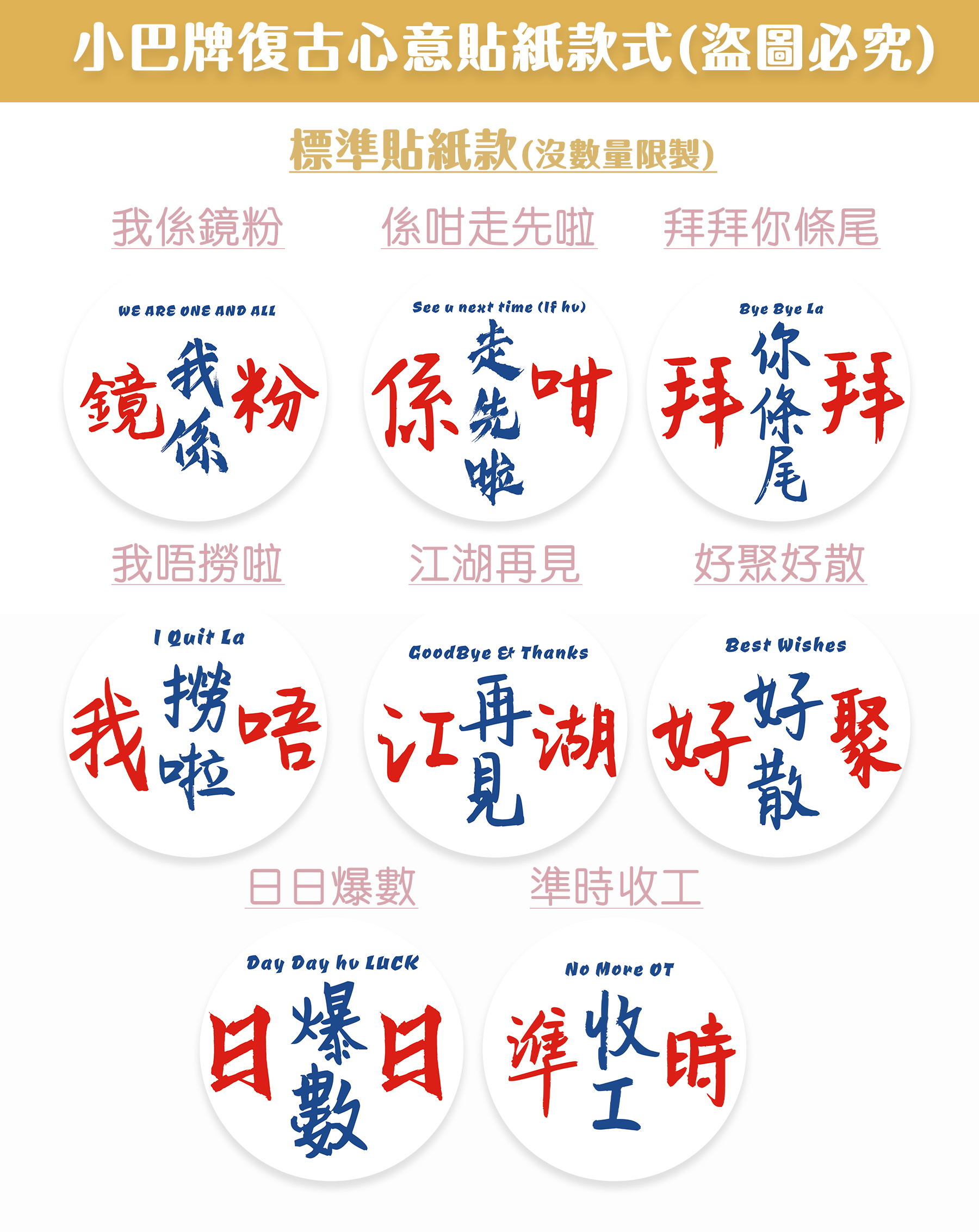 ・同款貼紙但選擇不同心意字句,每款需最少印製40份