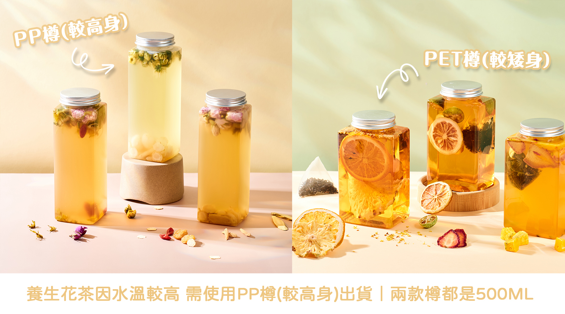 • 包裝規格:PP樽(復方養生花茶);PET樽 (水果茶及冷泡茶)