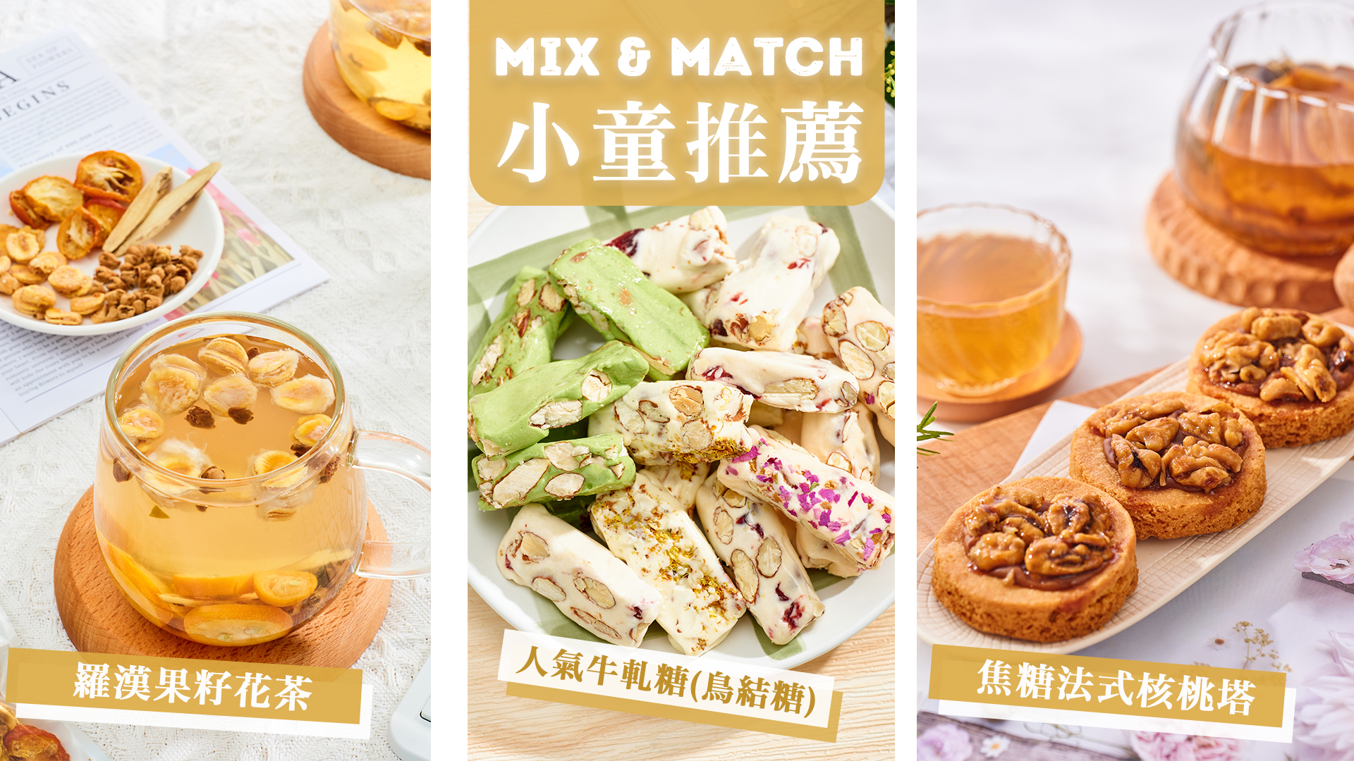 花果茶包、曲奇、花生酥、牛軋糖等小食