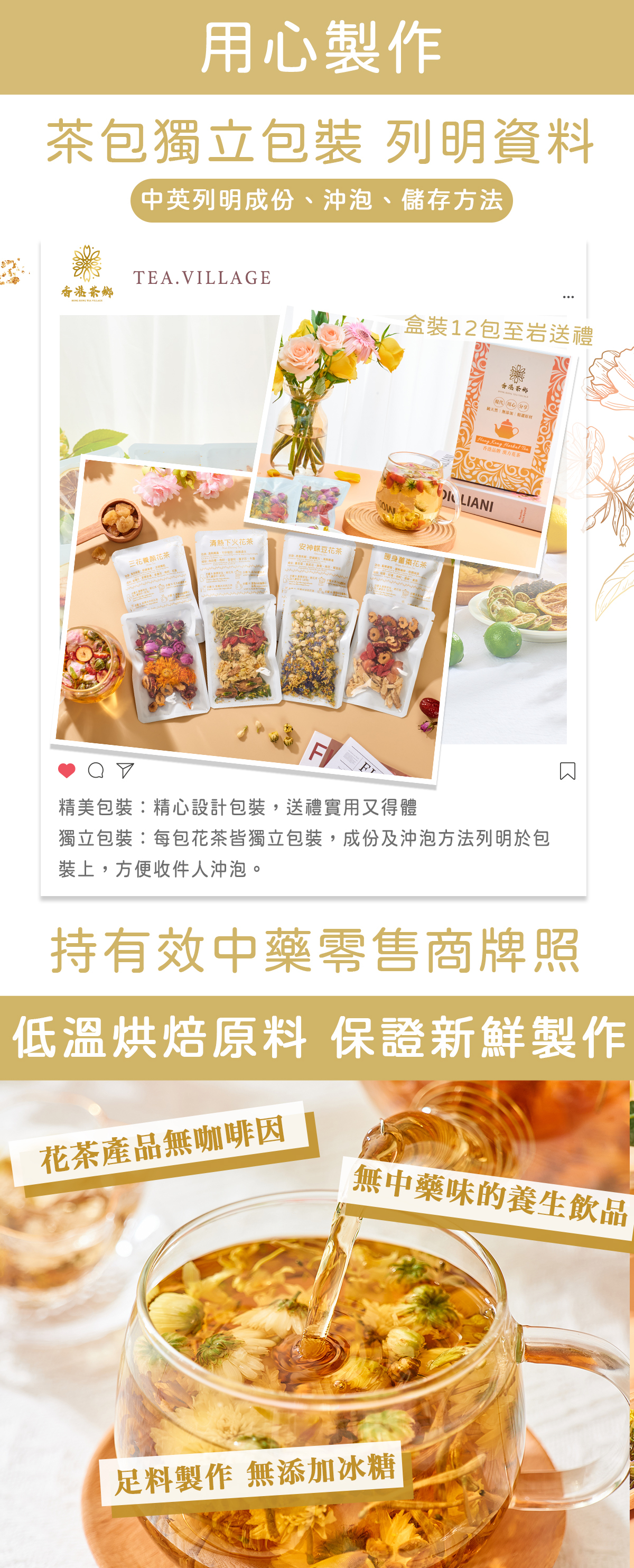 養生花茶配料經過精心挑選、上等靚貨、品質保證、足料足味!