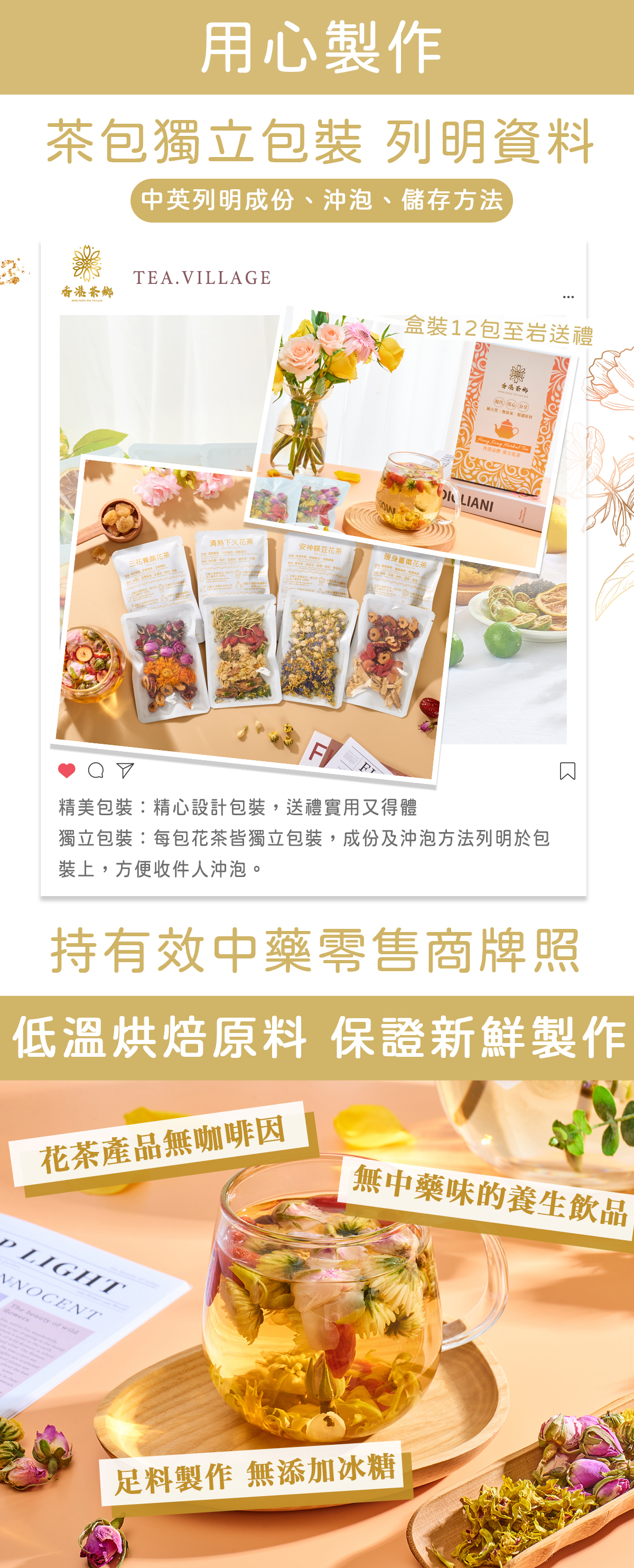 養生花茶配料經過精心挑選、上等靚貨、品質保證、足料足味!