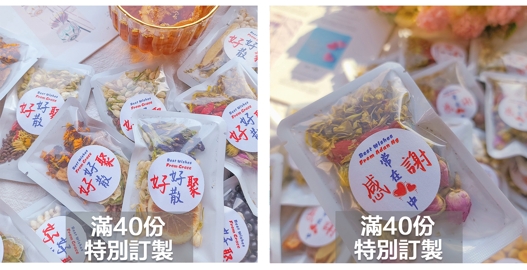 我哋可以將你想要嘅字句,製作成花茶包上既貼紙!