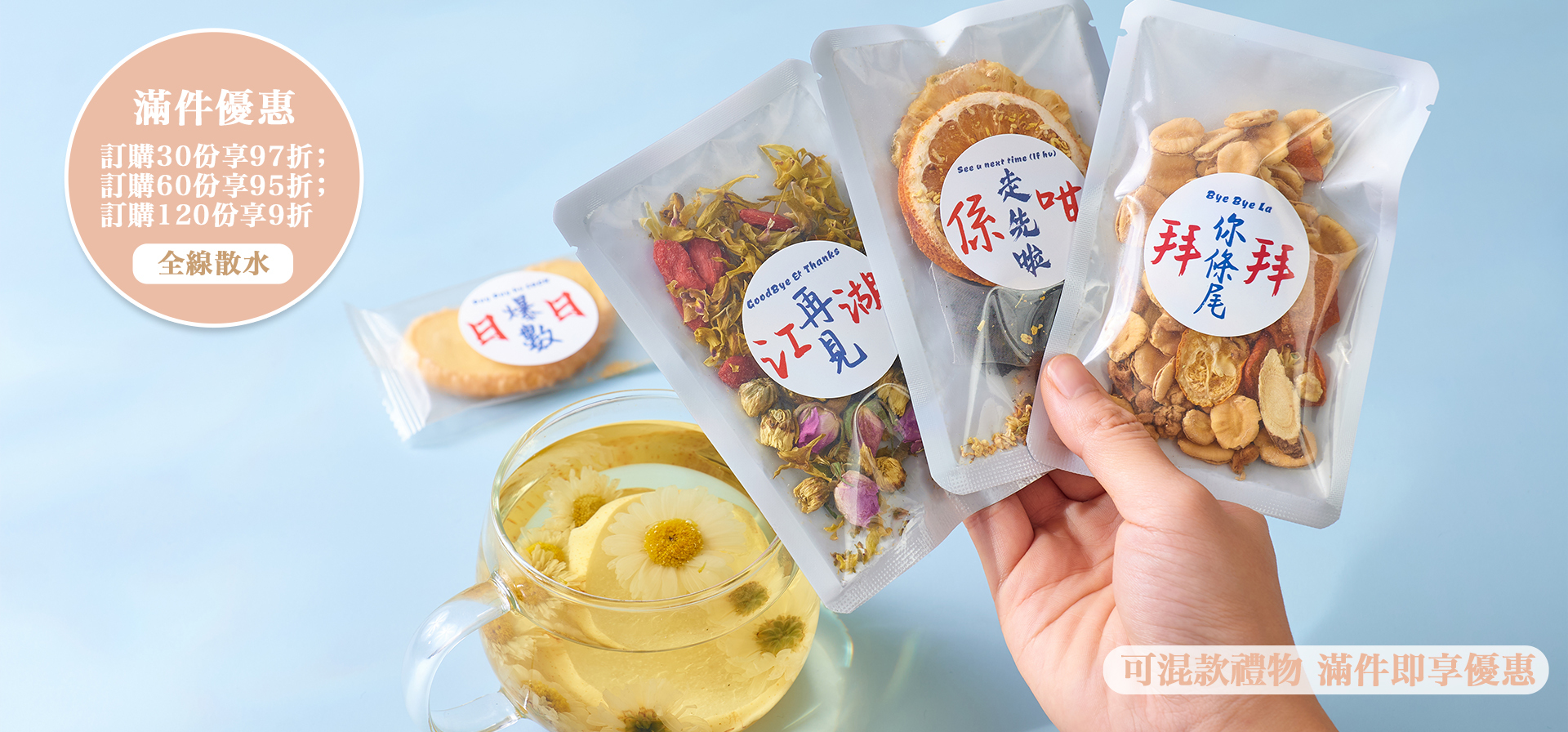 ・在網站下單時,請於備注欄填寫養生花茶/水果茶包款式(如想混款口味,每款口味需最少訂購5份):