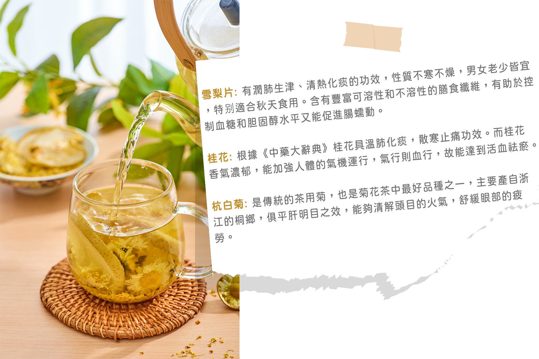 【配料】:雪梨片、菊花、桂花