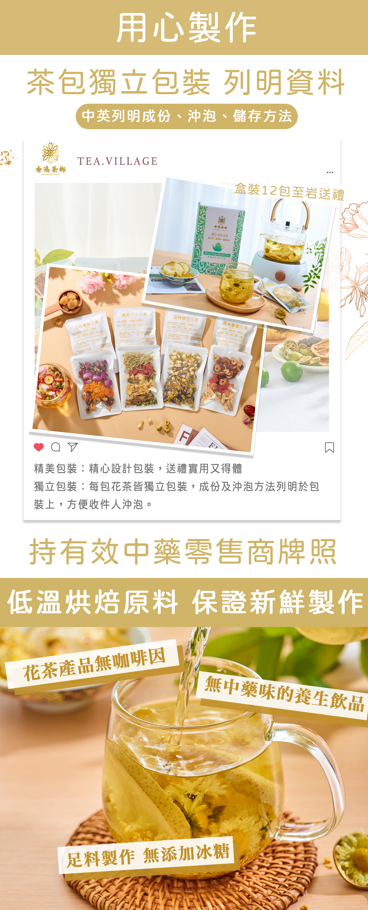 養生花茶配料經過精心挑選、上等靚貨、品質保證、足料足味!