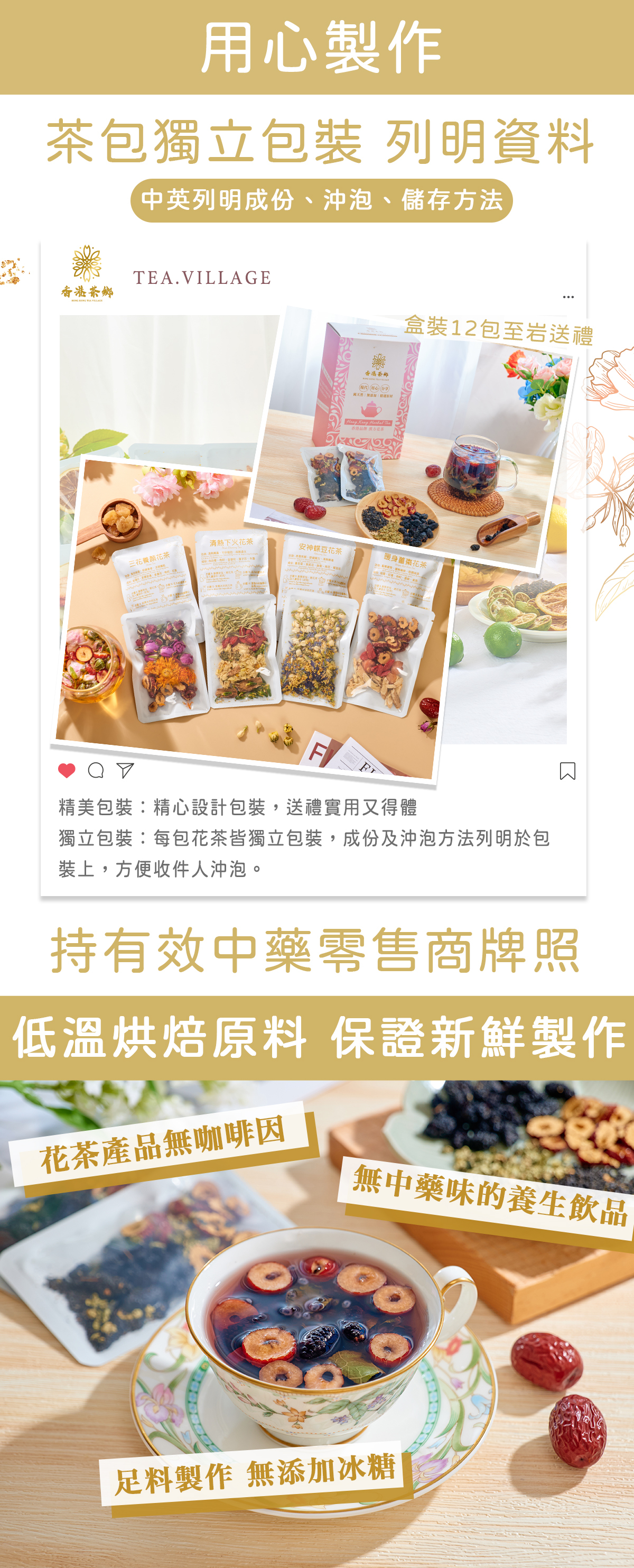 養生花茶配料經過精心挑選、上等靚貨、品質保證、足料足味!