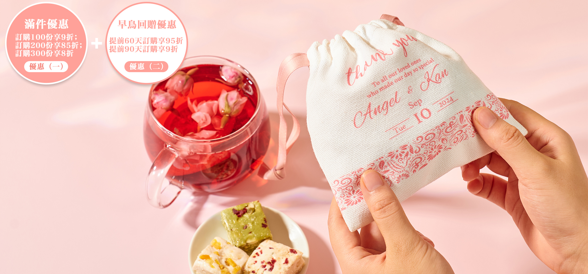 提前60天訂購婚禮回禮享95折回贈優惠;