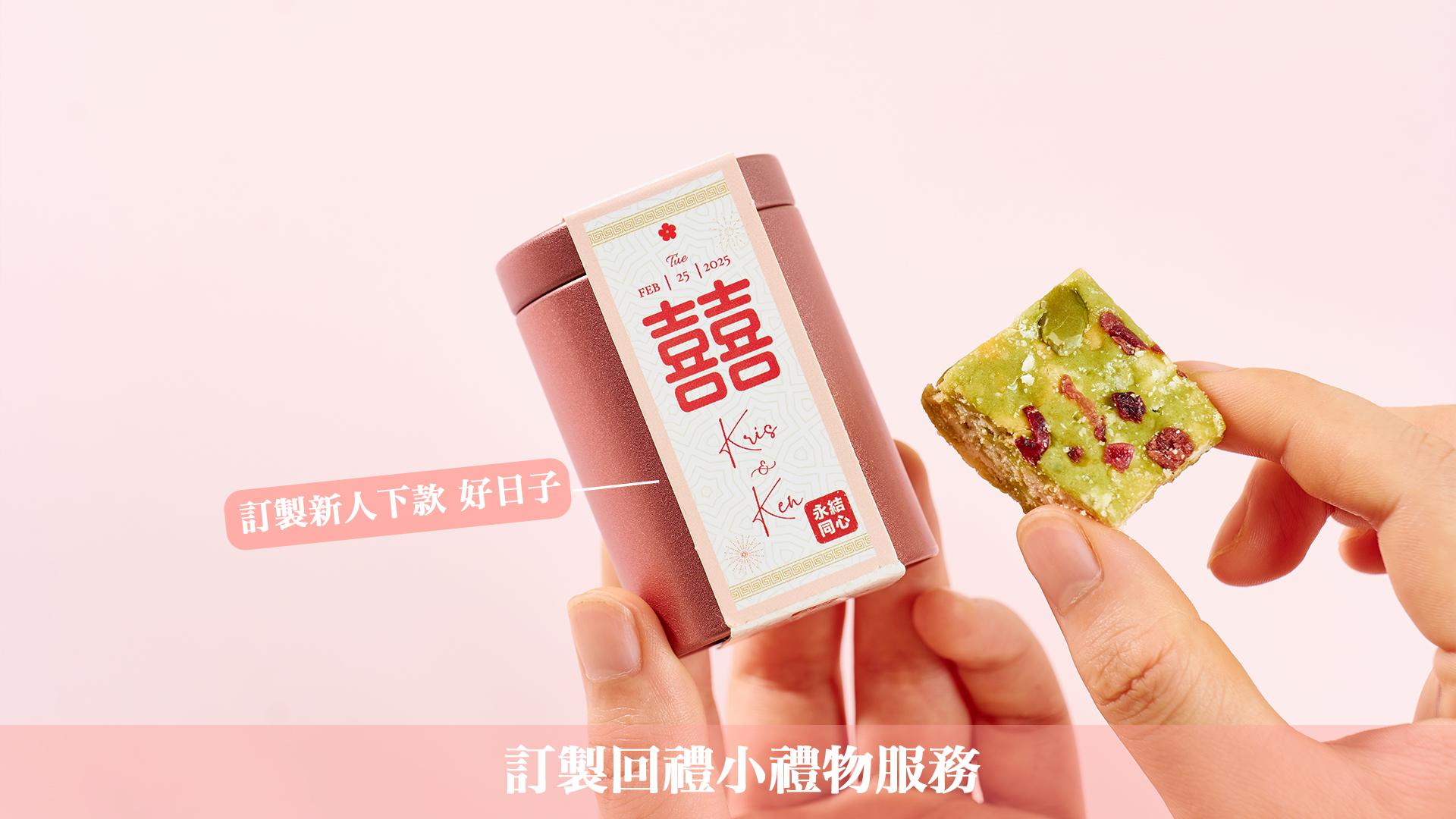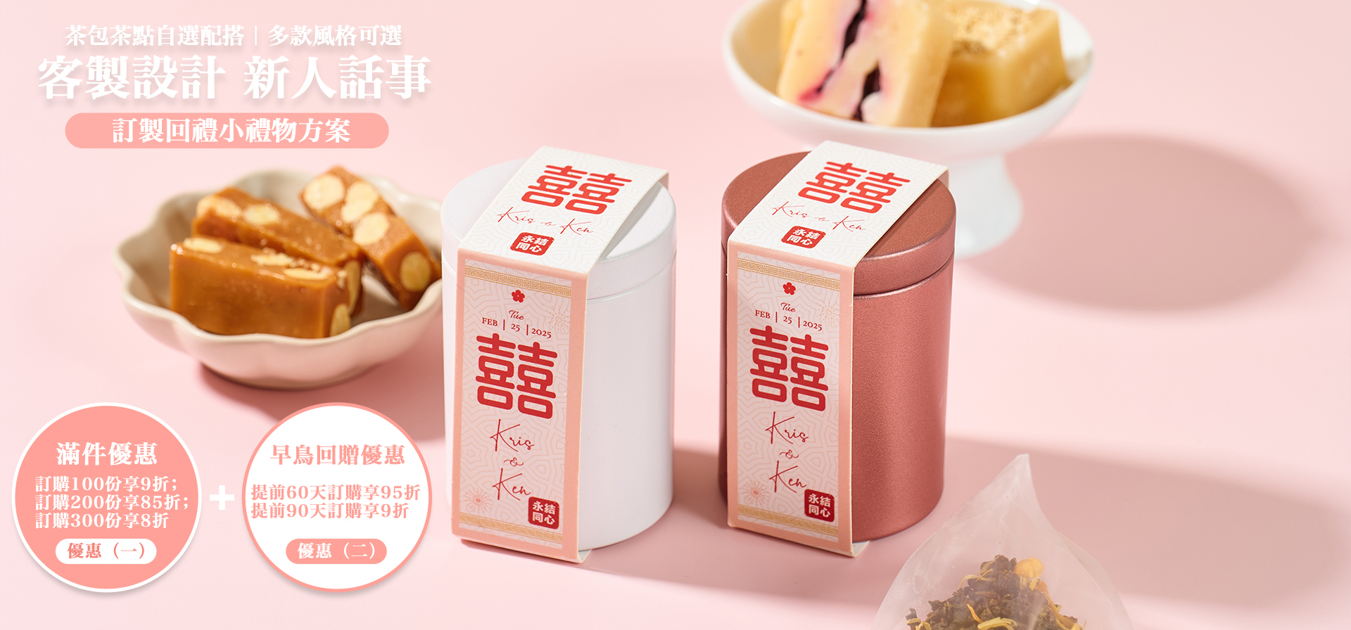 茶鄉自家設計囍禮罐,可個性化訂製腰封封面。