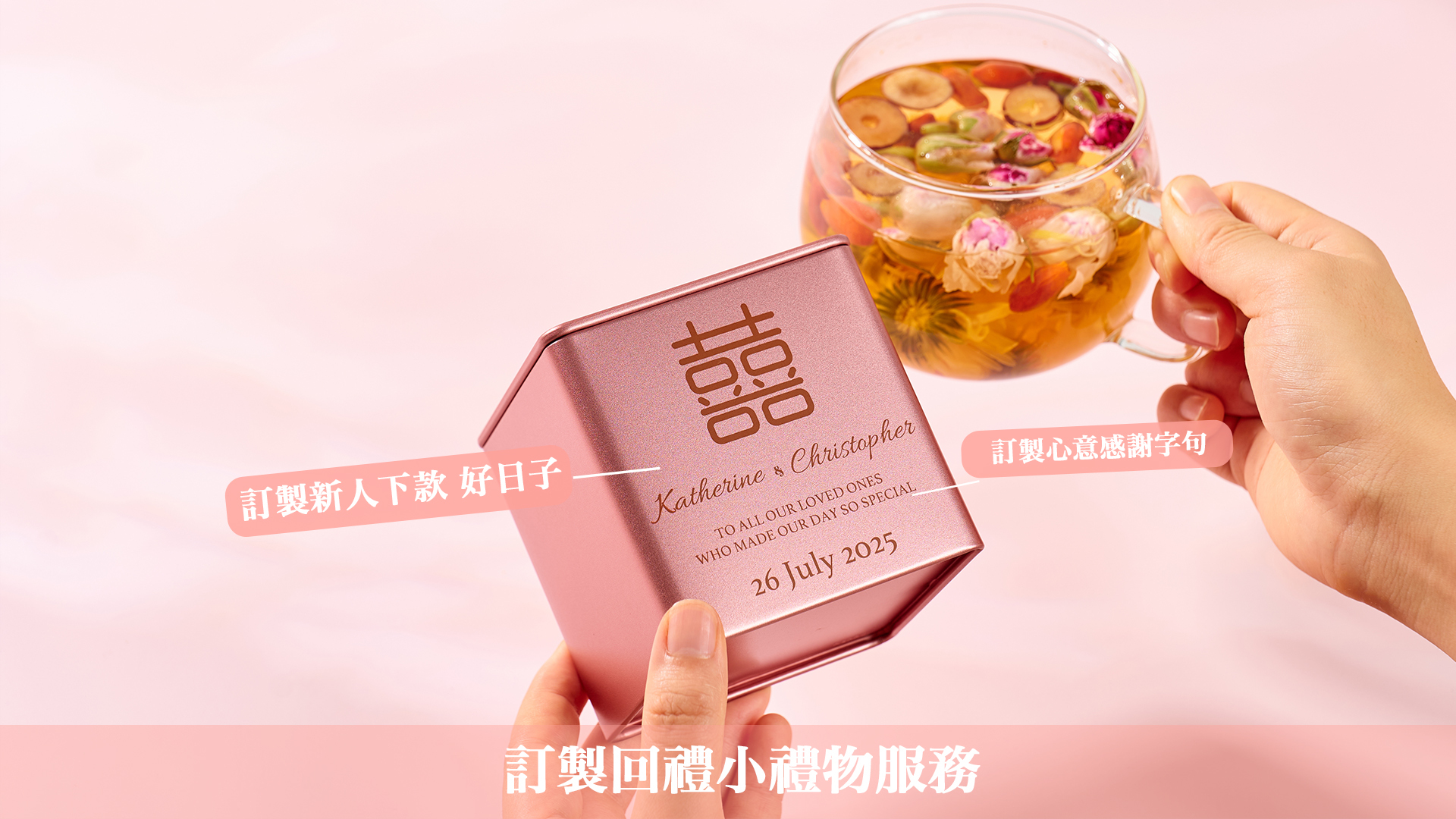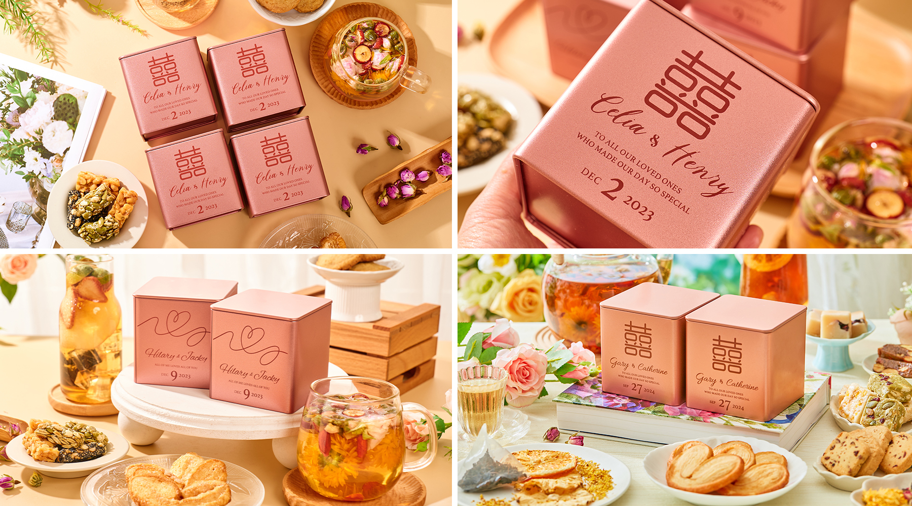 茶鄉自家設計囍禮罐,可個性化浮雕訂製封面。