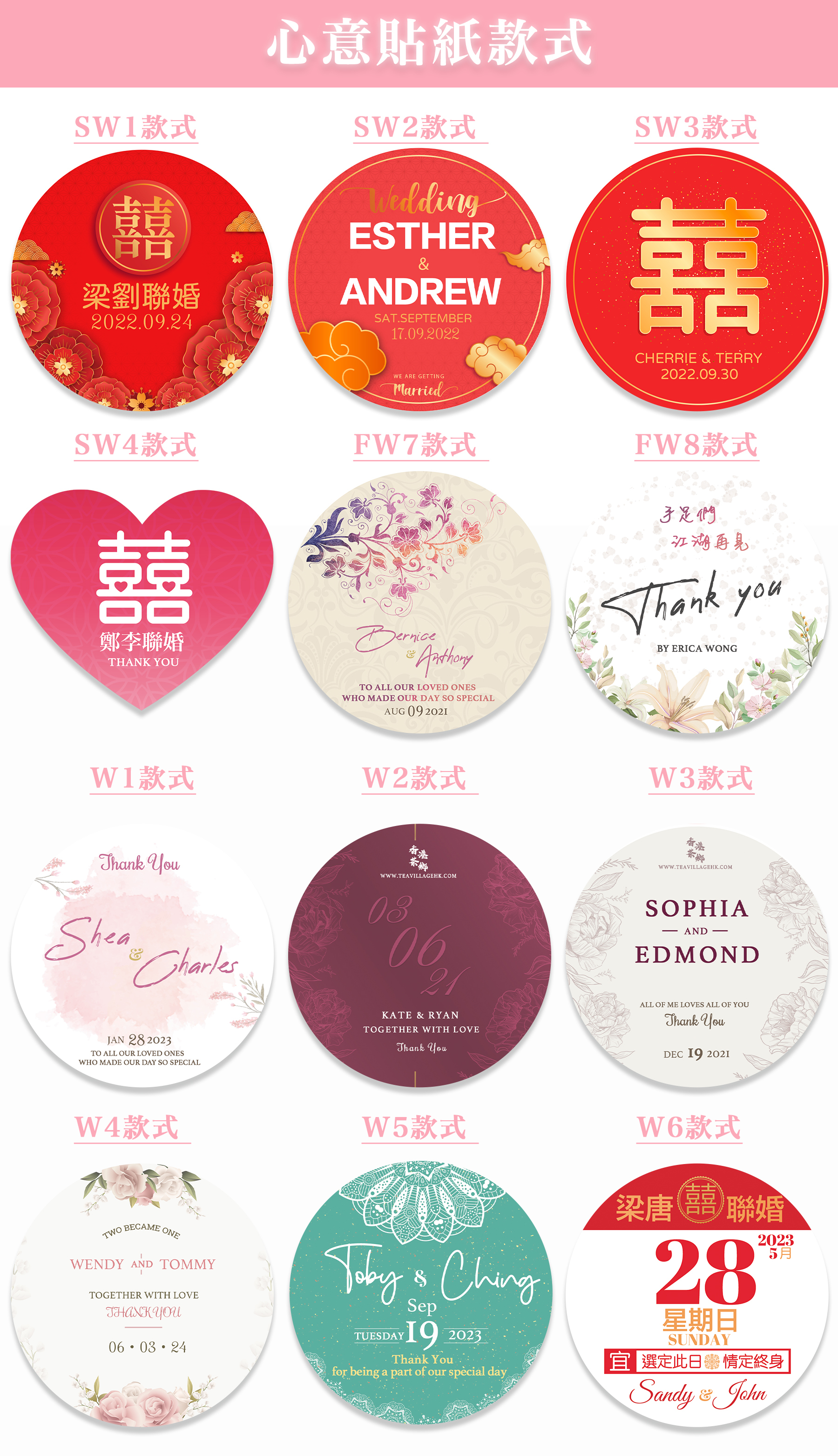 可特別印製款式,例如加下款/好日子/句子(如訂製設計,*每款設計*需最少訂購40份)