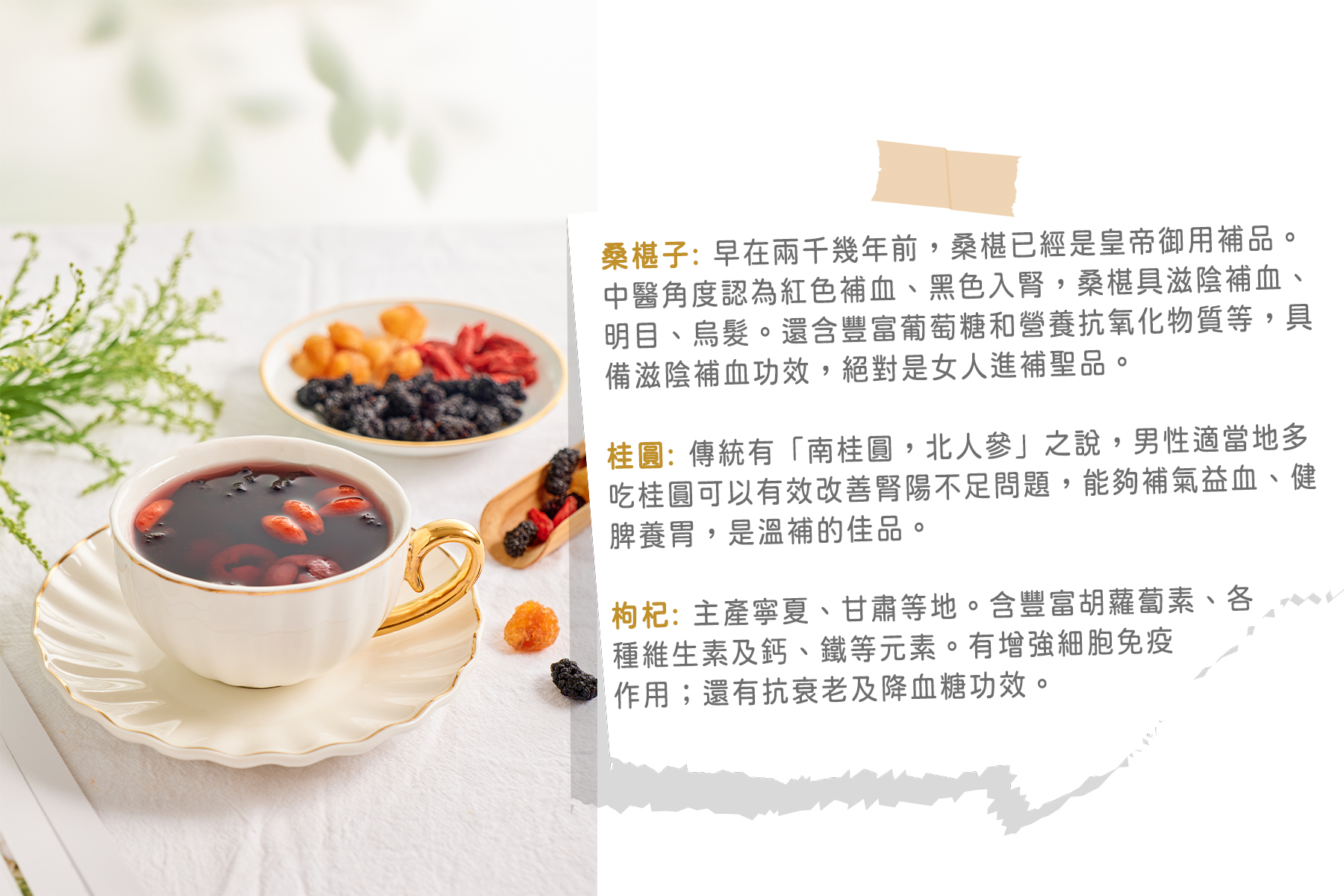 (2)滋潤頭髮:桑椹含鐵量高,讓營養更容易被頭髮吸收,幫助頭髮烏黑、健康;中醫觀點認為,頭髮要健康、不白頭,健康的肝臟、腎臟是關鍵,因為肝負責調節全身血液、腎則是儲存精氣的地方,當氣血無法到達髮根,髮質自然差,而攝取桑椹能補肝益腎、滋陰補血,可以預防白髮、脫髮。