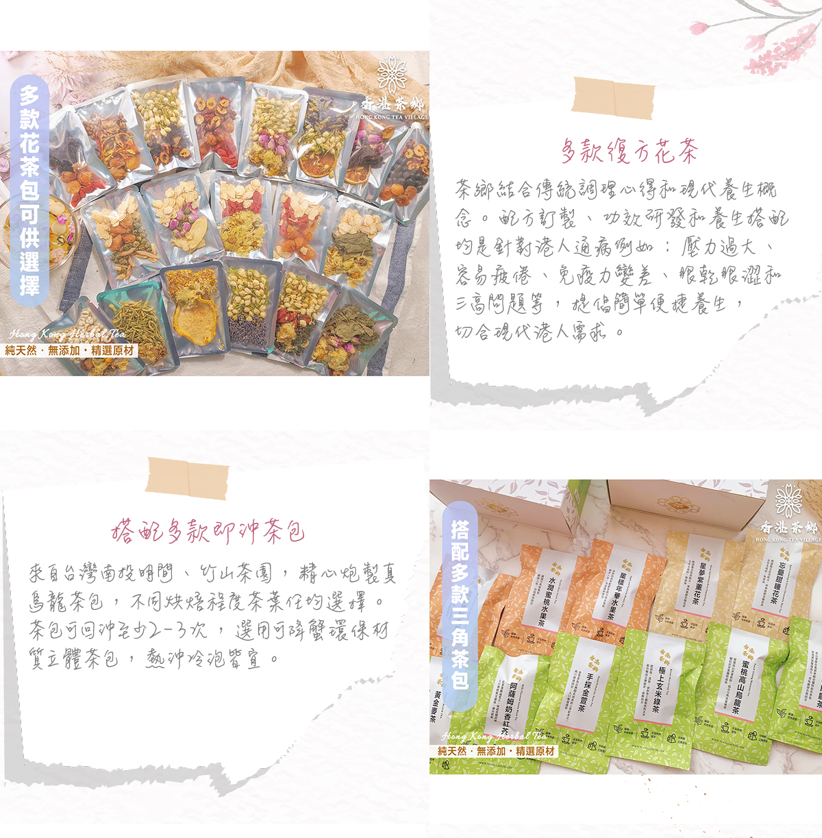 護肝補腎、清熱去濕、補血暖宮、美白養顏、瘦身去腫、護眼明目、寧神減壓,拼砌出各款禮品組合,儘顯您對客户的細心體貼。
