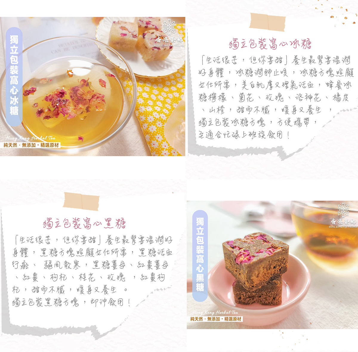 嚴選安心原材料,調和出眾多功效自然花草茶飲,水果茶包、純正真台灣烏龍茶、窩心即沖冰糖黑糖、滋味養生小食。