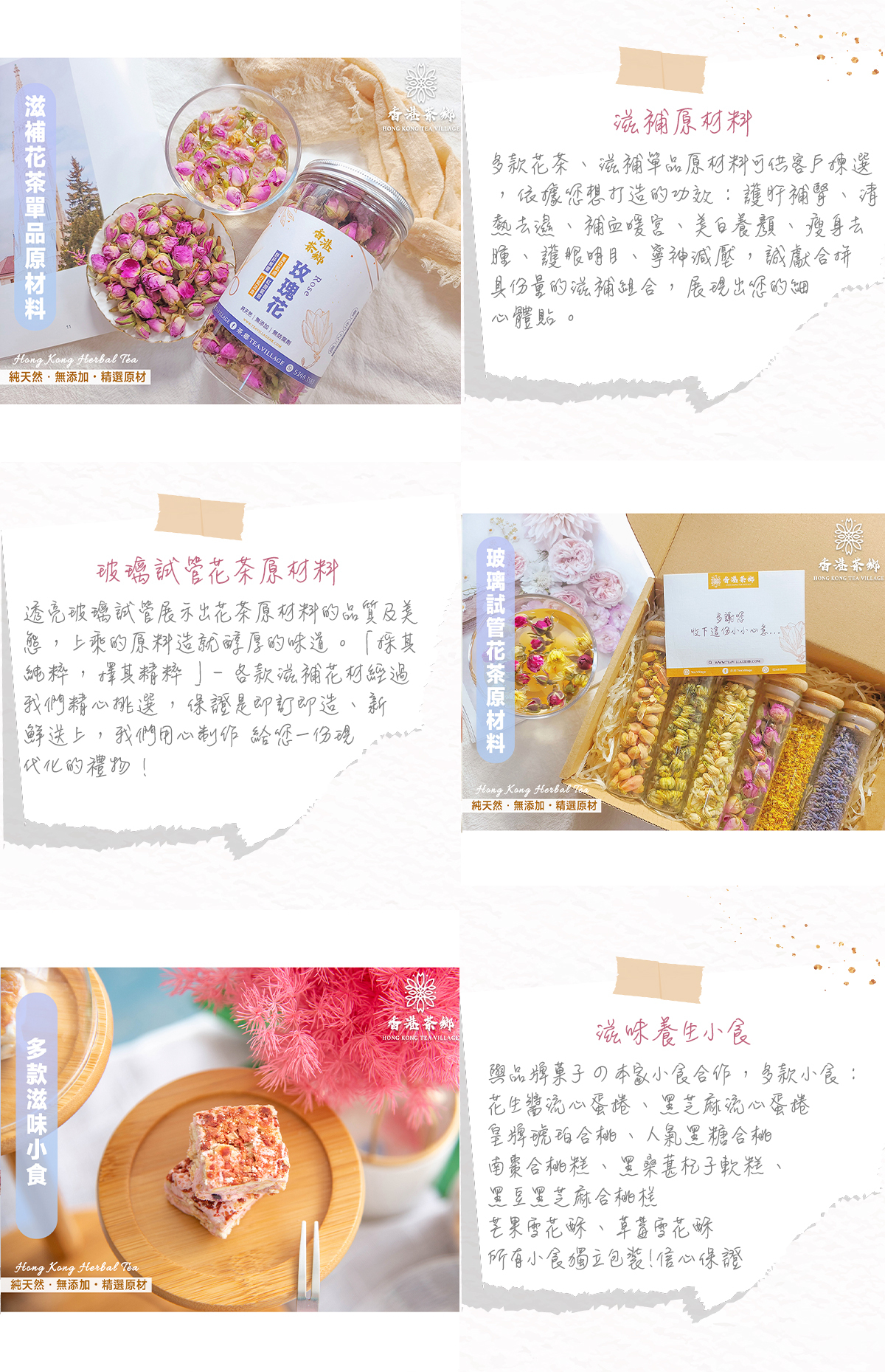 各款滋補花材經過我們精心挑選,保證是即訂即造、新鮮送上