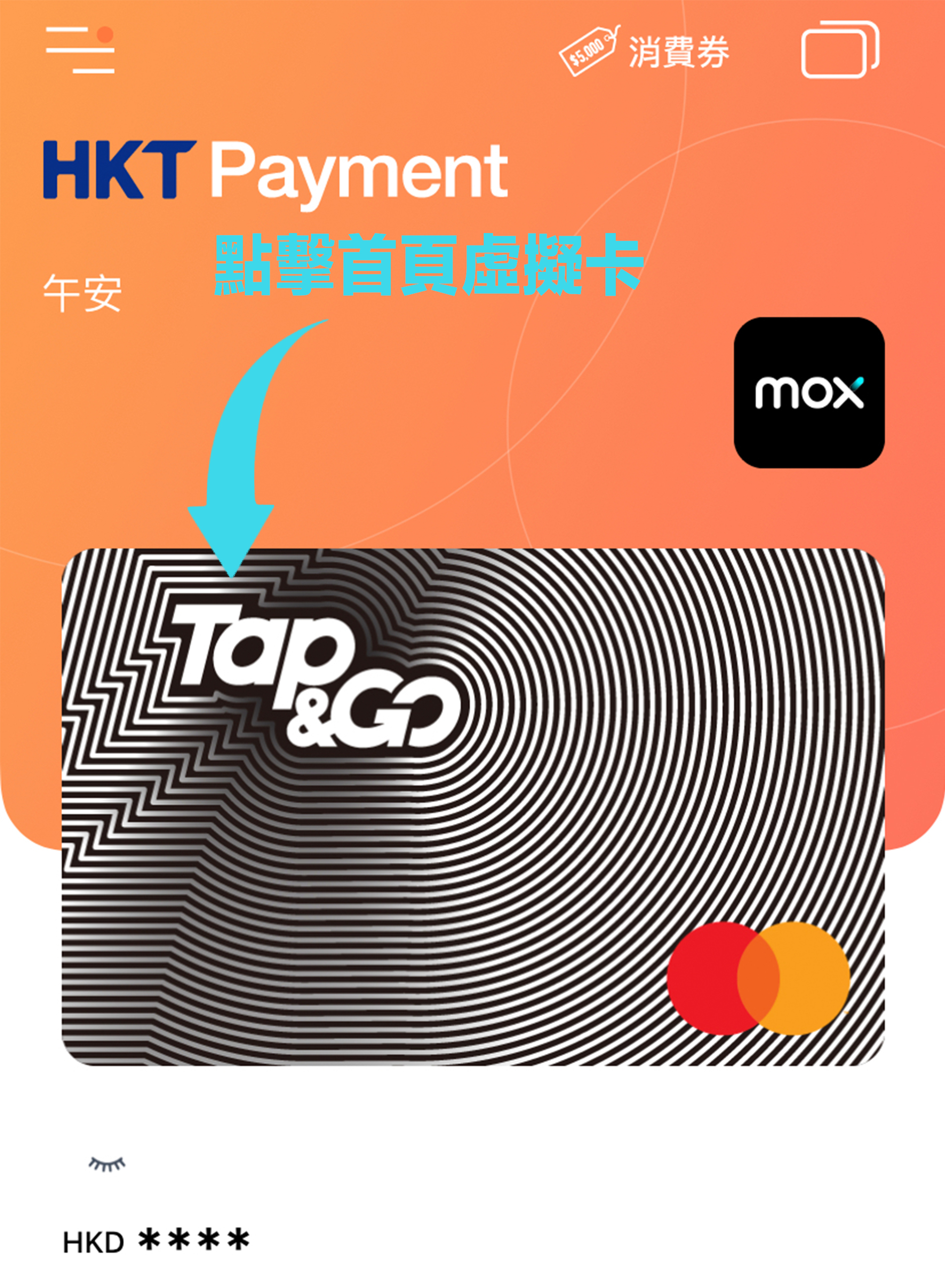 Step 3. 回到首頁後,點擊首頁虛擬卡圖案