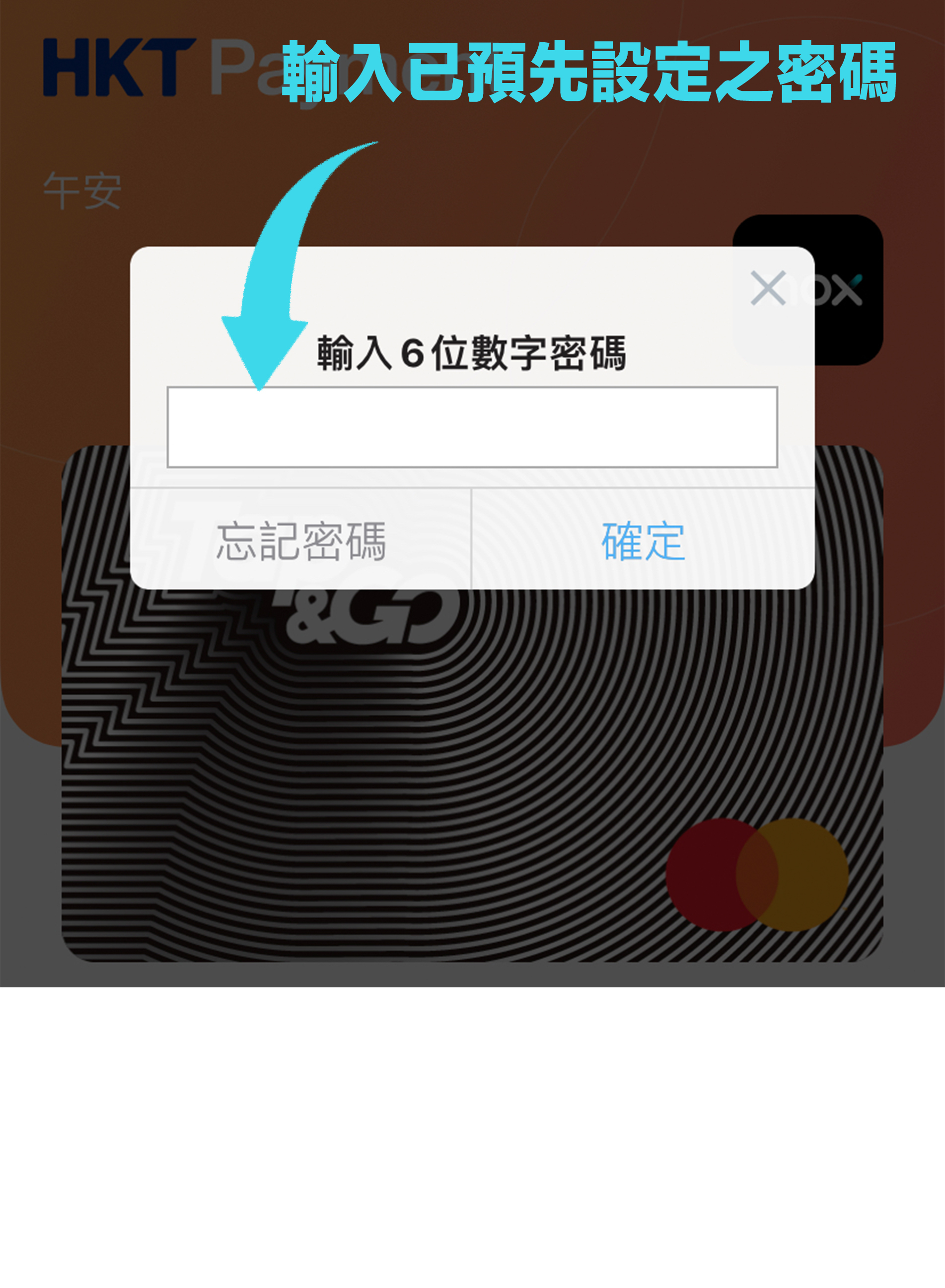 Step 4. 輸入預先設定之Tap & Go 密碼