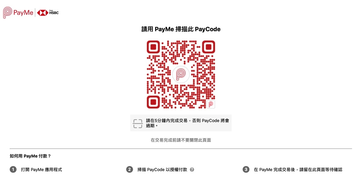 Step 2. 打開PayMe應用程式,掃描特定Pay Code即可完成交易(PayCode只在限時5鐘有效)