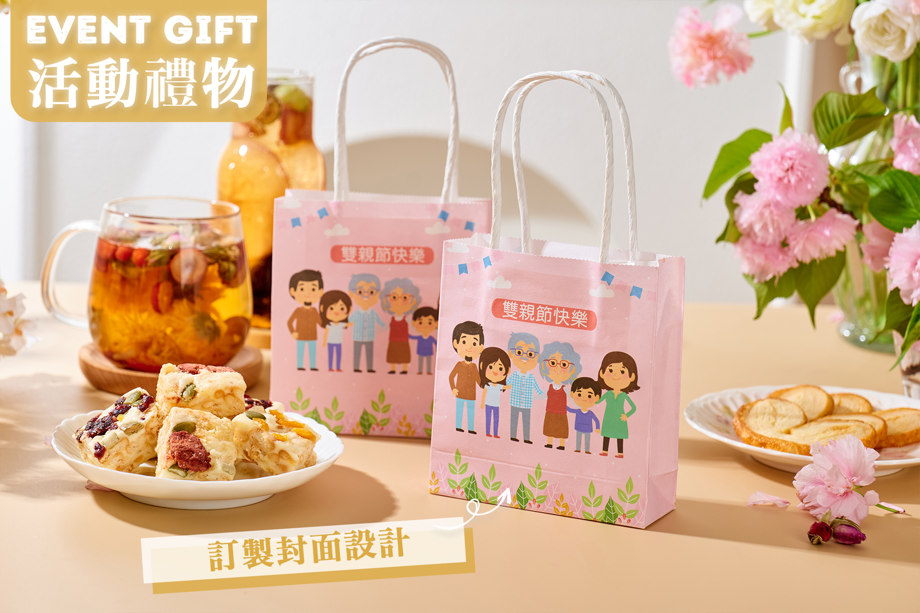 ・客製化設計:訂製包裝加入節日主題元素、公司商標、活動口號等