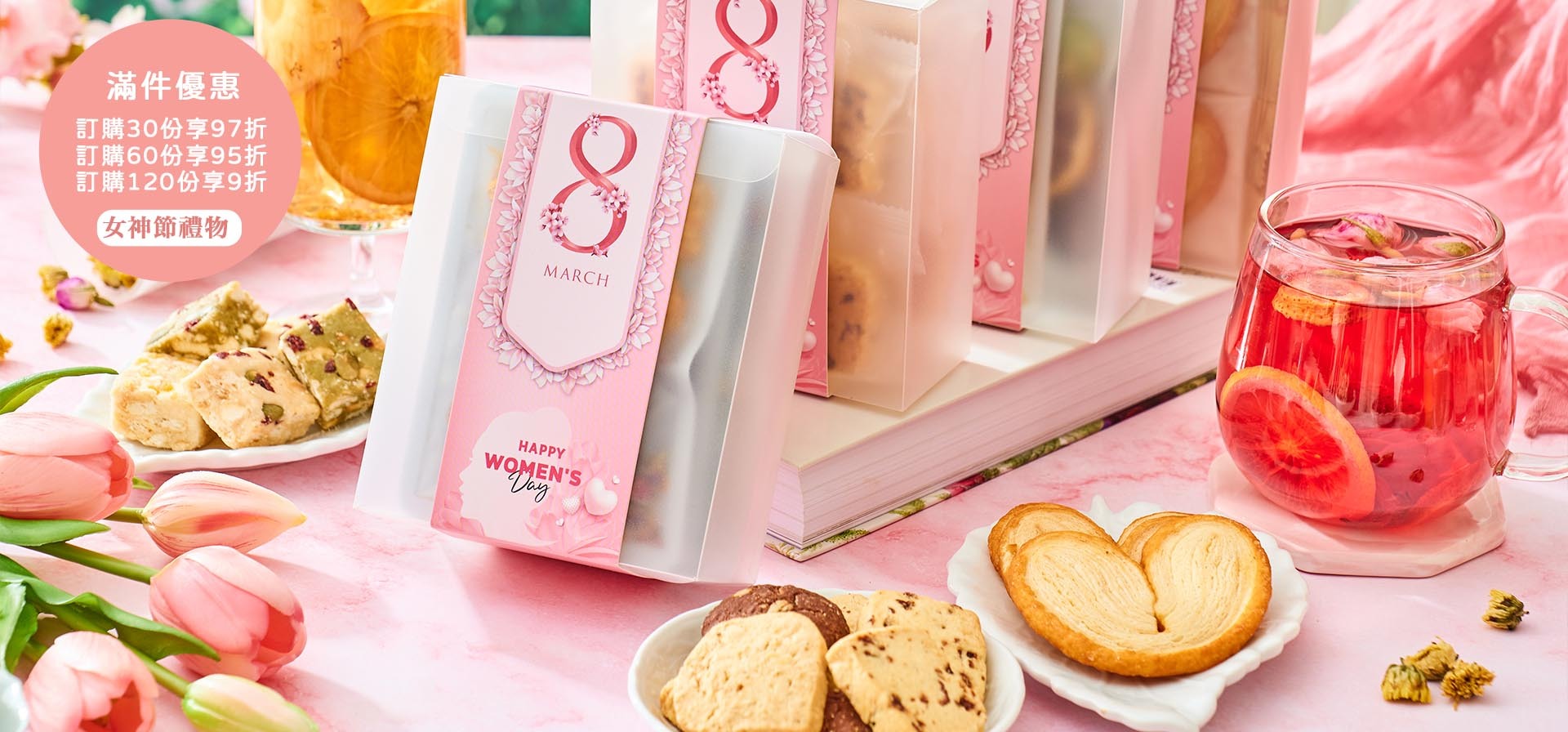 ・客戶與夥伴贈禮:精選花果茶搭配精緻茶點,搭配專屬品牌禮盒,打造別出心裁的婦女節商務贈禮,傳遞節日祝福與細緻心意。