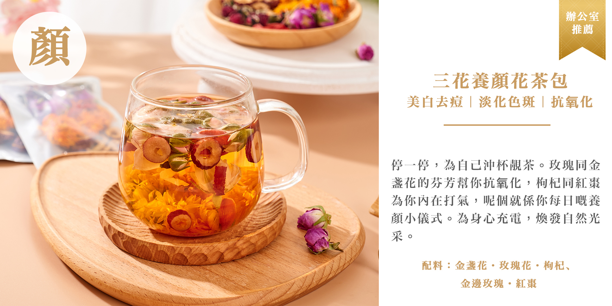 ► 從提神、減壓到美顏,提供不同養生功效散水茶、照顧不同每位同事需求。