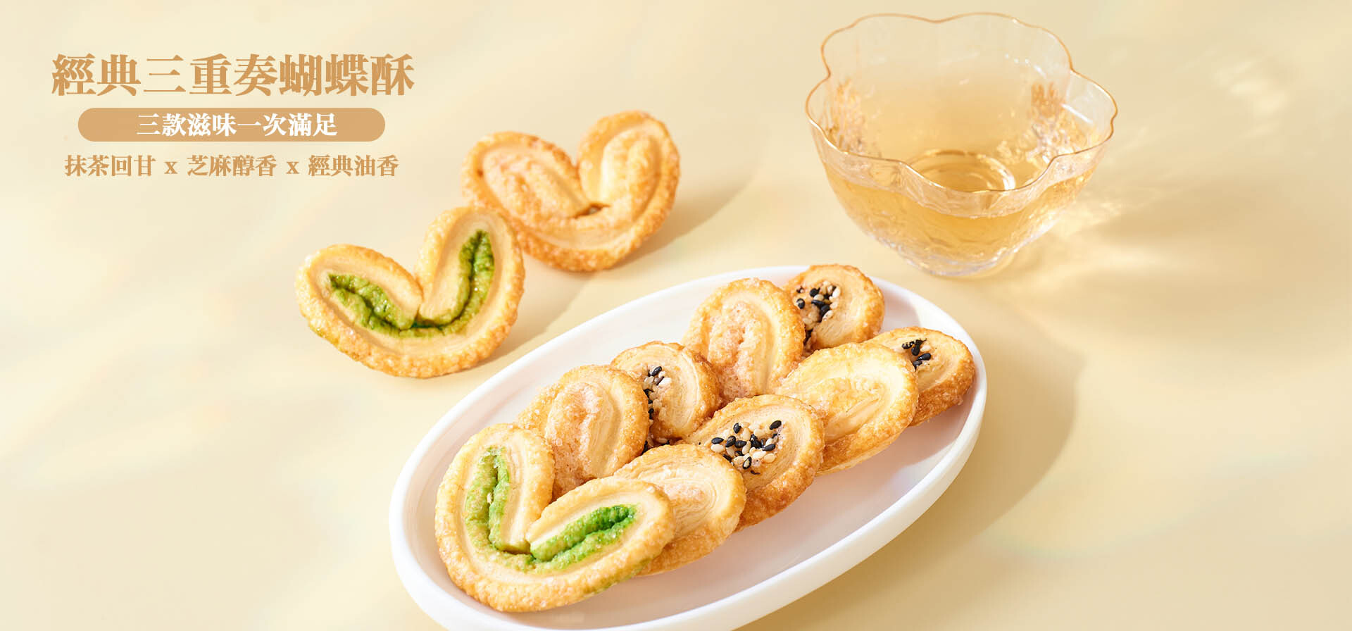 抹茶蝴蝶酥 、黑白芝麻蝴蝶酥 、原味蝴蝶酥
