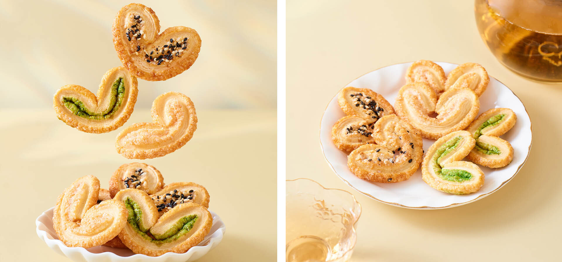 ▸抹茶蝴蝶酥 - 選用頂級日本抹茶粉,融入層層酥皮之中。入口先是酥脆的千層質感,隨後抹茶的幽雅甘香在舌尖緩緩綻放,餘韻清新優雅,是抹茶愛好者不能錯過的茶香體驗。