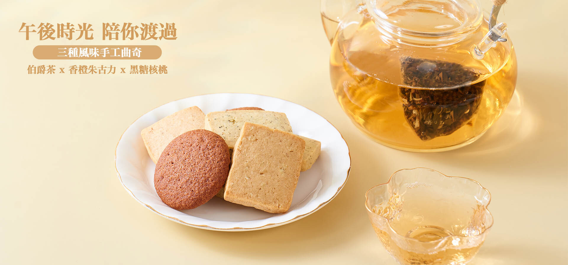 伯爵茶曲奇、香橙朱古力曲奇、黑糖核桃曲奇