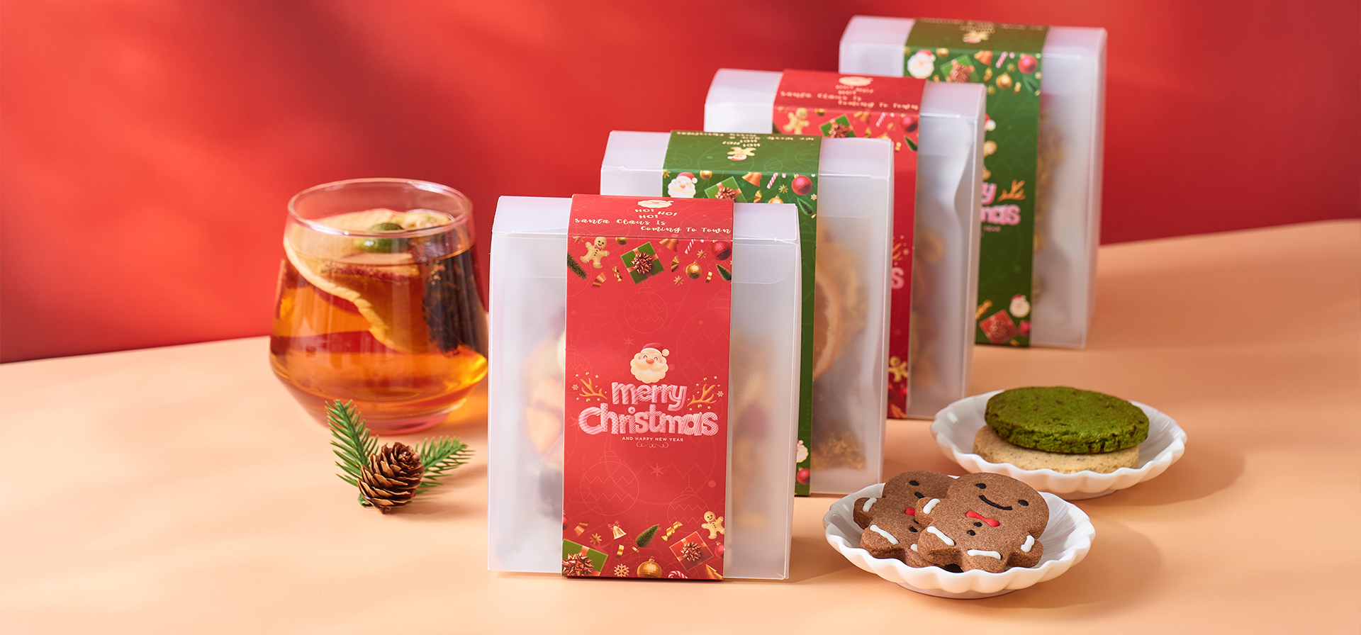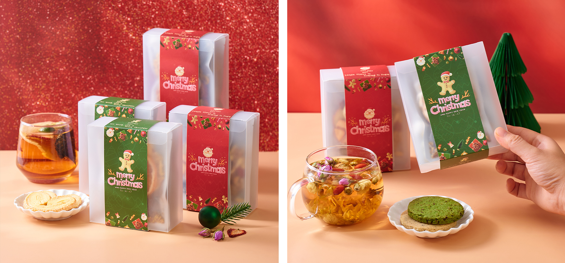 聖誕小禮物推薦 - 預算$30內 磨砂盒配聖誕主題腰封設計 (可選花茶、水果茶、薑餅人、曲奇)