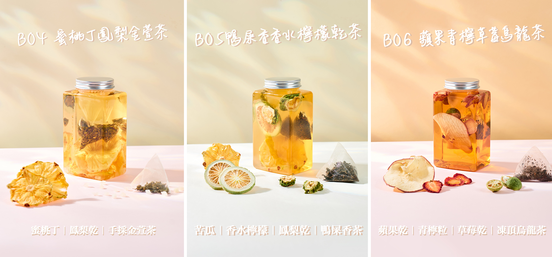 • 包裝規格:PP樽(復方養生花茶);PET樽 (水果茶、冷泡茶、蜂蜜茶)