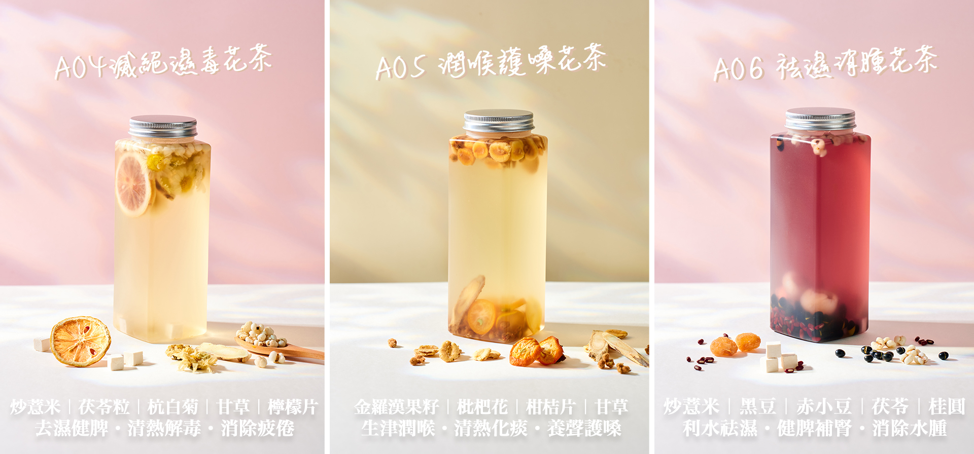 • 包裝規格:PP樽(復方養生花茶);PET樽 (水果茶、冷泡茶、蜂蜜茶)