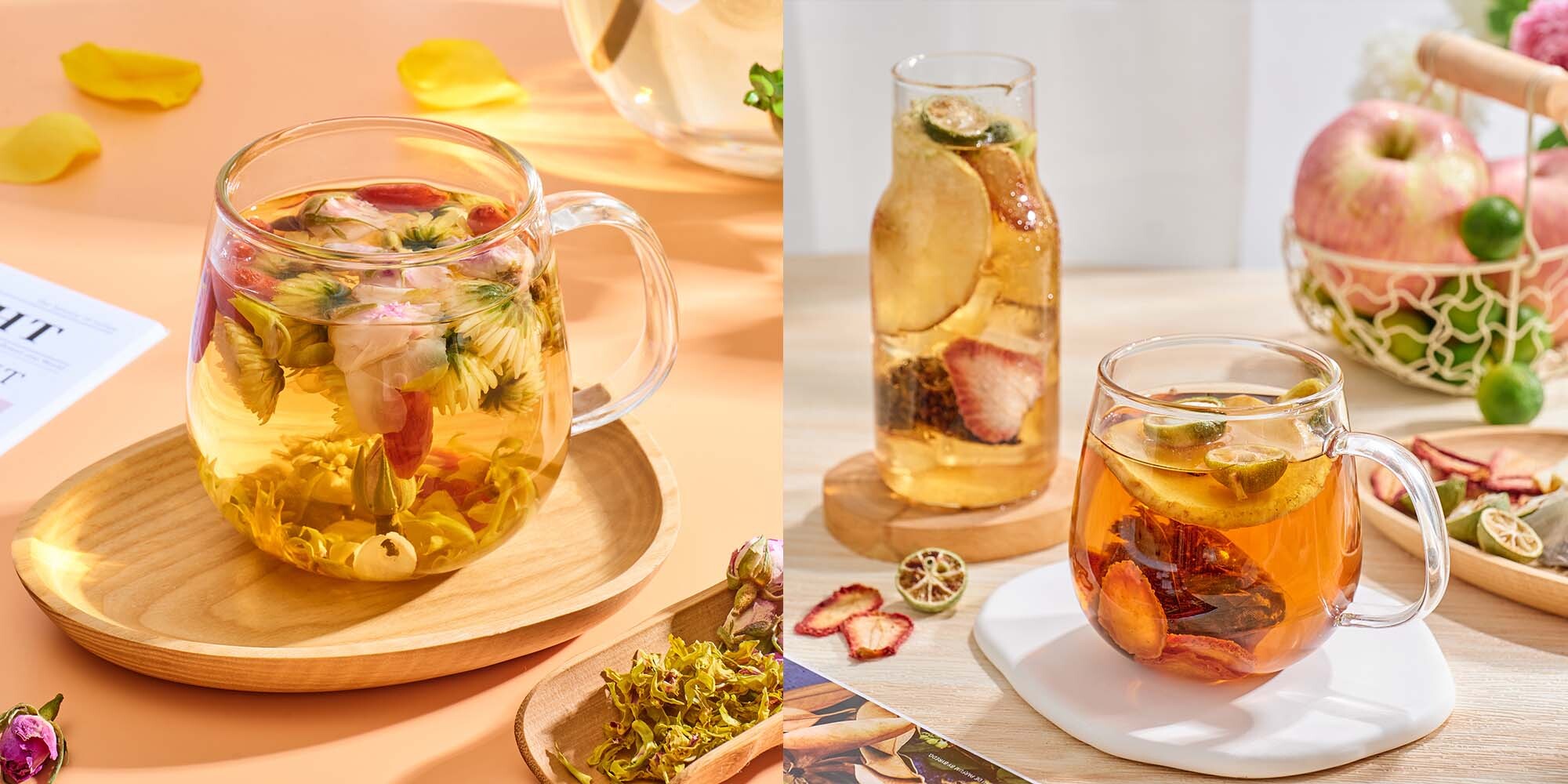 草莓百香果紅茶、雪梨西柚桂圓紅茶