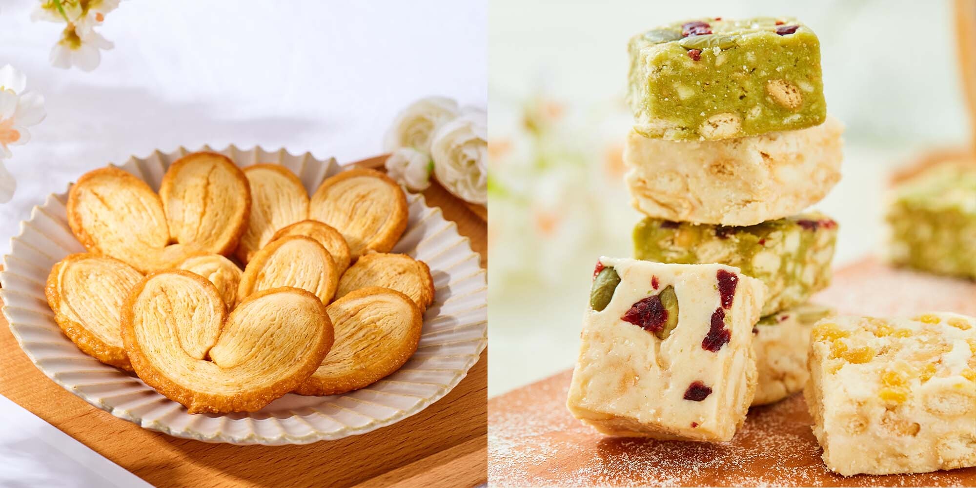 蝴蝶酥/雪花酥/曲奇: 存放於室溫陰涼乾爽處,請於2個月內食用